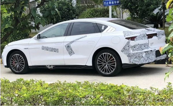 车尾部分 ,尾灯的部分没有特别大的改变,贯穿式尾灯设计中加入“龙爪”似的的灯头排列组合,此次还加上了一根镀铬装饰条来进一步提升其视觉效果,非常有辨识度。后包围区域则与比亚迪DM的设计大同小异,同样采用了贯穿式镀铬条,左右两侧也加上了红色反光条,底部则是用黑色防护板进行了包裹,搭配上隐藏式排气设计,营造出不错的运动气息;不同的是,新车尾部带有“DM-i”的标识,进一步突出其特殊身份。