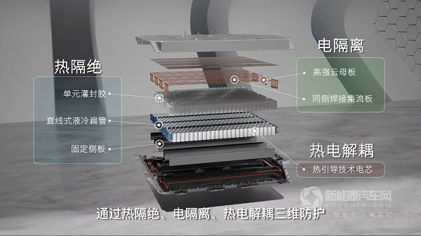蜂窝电池技术拥有热隔绝、电隔离、热电解耦三大核心技术,类似“蜂巢”的仿生结构设计,不仅结构稳固,还实现了电池单体的单元化封装,为每颗电芯筑造一个安全舒适的家,实现一颗电芯爆炸,电池包不起火、不爆炸,而且是保证不同失效模式、不同失效位置以及不同生命周期内都是安全可靠的。