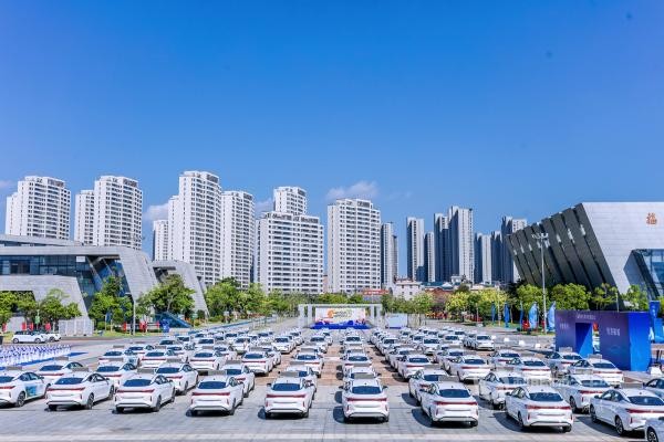 “向新而行,悦游融城”江淮爱跑百台出租车投放仪式于9月29日在福清市两馆一中心隆重举行。活动现场,百台崭新的江淮爱跑整齐列阵,在福清市各级主管单位见证下正式交付并投入福清市公共交通系统运营,标志着江汽集团与福清市在新能源公共交通领域的合作迈入规模化、深度化的新阶段。