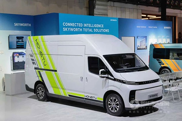 创维鸿途电动大VAN以“更大空间、更强智能、全方位安全”重新定义品类标杆,并荣膺红点设计大奖。车型包含客运版、货运版两种形态,最高配备100kWh电池,续航达410公里,且支持120kW直流快充,30分钟即可从20%充至80%。车内配备12.8英寸智能大屏、按摩座椅及高品质音响,提供乘用车级舒适体验。在安全方面,采用16环笼式车身结构与超高强度钢,符合欧盟R155/R156网络安全标准,并搭载L2+智能驾驶辅助系统。