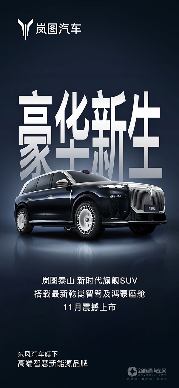 大六座SUV市场进入"战国时代",群雄争霸愈发激烈。10月20日,据岚图官方透露,其新时代旗舰SUV岚图泰山将于11月正式上市。结合官方海报配文可以确认,岚图泰山将搭载华为最新乾崑智驾及鸿蒙座舱5.1。